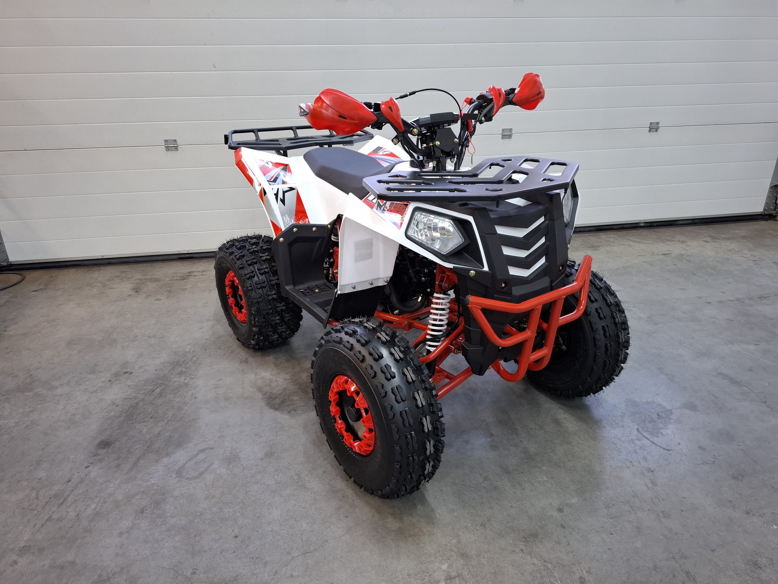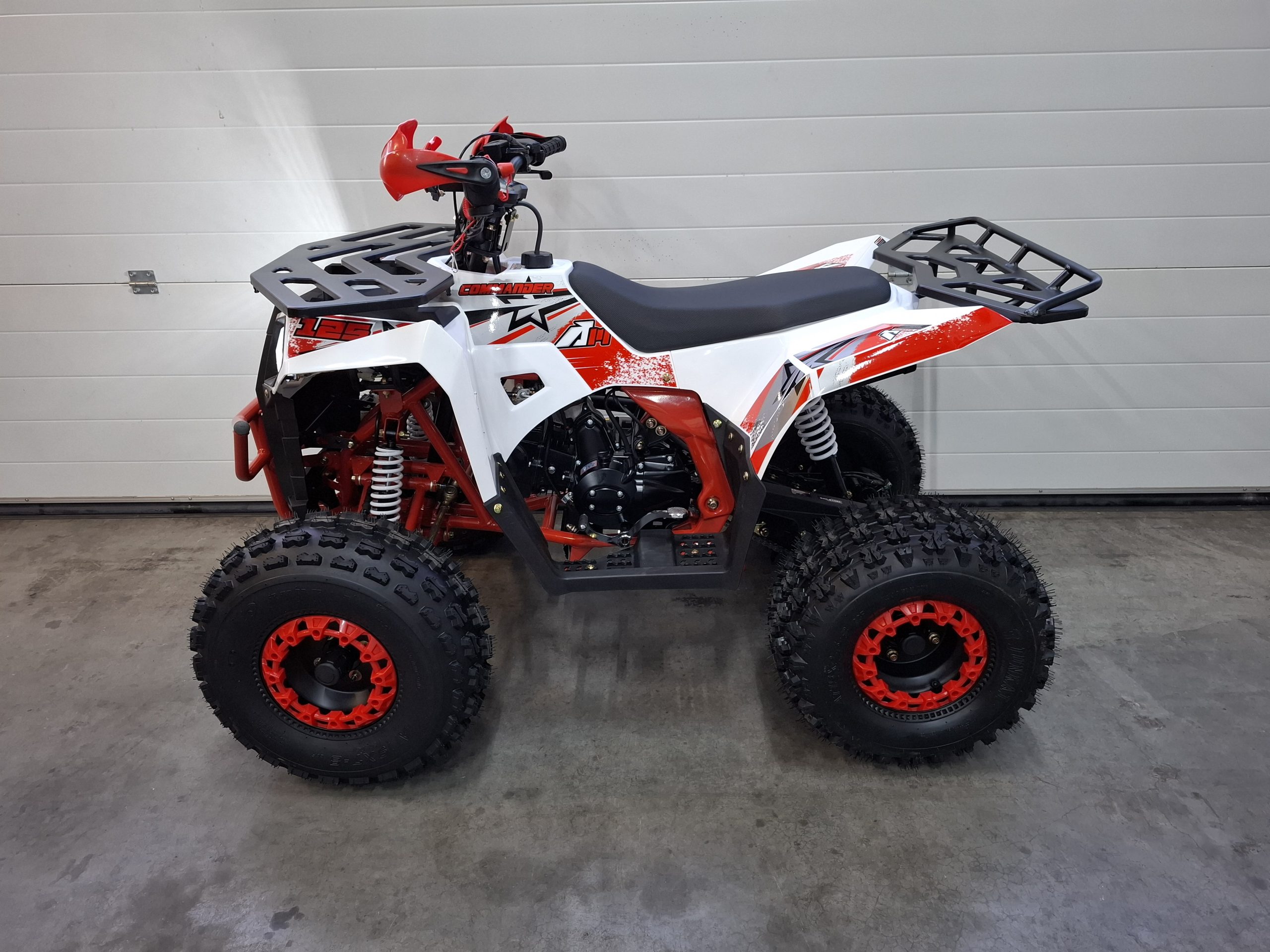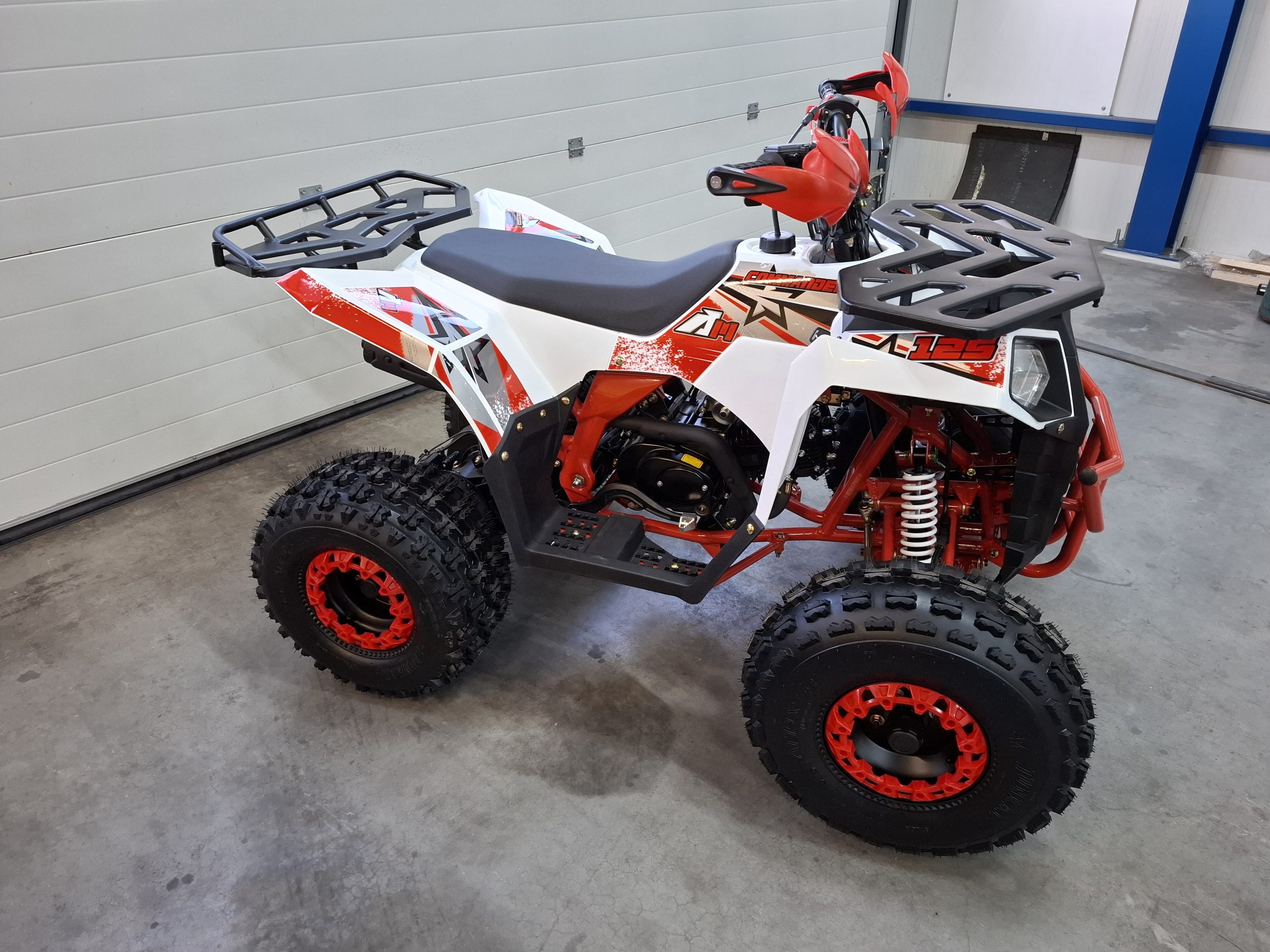 De Apollo Commander is een krachtige en robuuste quad die geschikt is voor zowel recreatief als sportief gebruik. Dankzij de semi-automatische versnellingsbak (Achteruit – Neutraal – 1-2-3) is schakelen eenvoudig en geschikt voor rijders van elk niveau. De quad is uitgerust met een betrouwbare 125cc 4-taktmotor en haalt snelheden tot circa 80 km/u – begrensbaar met een schroefje in de gashendel. De dikke 8 inch noppenbanden zorgen voor uitstekende grip op elk terrein, terwijl de hydraulische schijfremmen, toeter, LED-verlichting en dodemanskoord zorgen voor veiligheid en comfort. De quad is voorzien van elektrische start, duimgas en een overzichtelijk dashboard. Met een zadelhoogte van 76 cm en een draagvermogen van 100 kg is hij geschikt voor jongeren en volwassenen. Standaard wordt de quad afgemonteerd geleverd op een pallet. Liever afhalen of rijklaar geleverd? Neem gerust contact met ons op.